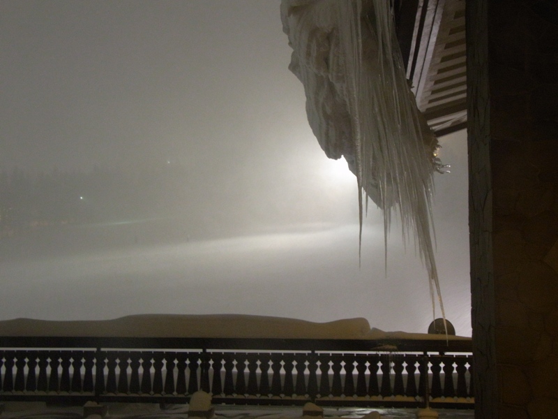 15) 光に浮き出る舞う粉雪、幻想的な景観