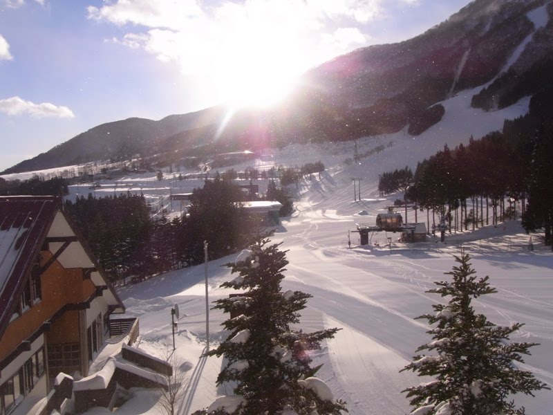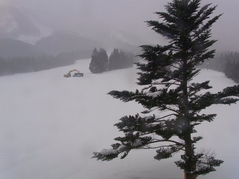 13) 粉雪舞い、少々靄っている朝のゲレンデ!