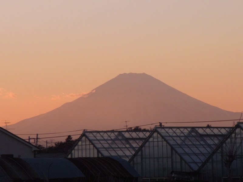 4) 黒富士とグラデーション鮮やかな空に飛行機