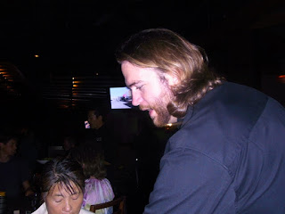 ☆日本語のメニューも有り一先ず一安心。 しかし、ビールは100銘柄以上あり、選んだ料理をこのお兄さんに言って生ビールのアドバイスをもらう。 注文したのは「 苦味を抑えた黒ビールでコクが有るとも生きのよい喉越し」 で美味かった。エーッと、次は・・・。- Yard House-