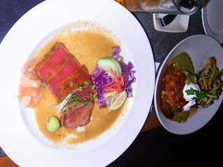☆メインディッシュは、肉料理と魚料理(右)を1品づつ注文し相互シェア―したが、彩りも良くまず目で楽しめる。 味付けも奇をてらうのではなく斬新で美味かった。 後味も良く、これで支払額も実にリーズナブル。 ここもお奨め♪ - Yard House-