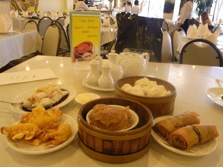 ★ 誠にラッキー! 店の好意にこたえるべく、矢継ぎ早に来た蒸し器付きワゴン3台からまず5品(写真)を選ぶ。 飲み物?、青島ビール(小)を2本。 珍しくも?予想した以上に、評判通りに美味い飲茶! それでは、飲茶以外も1品ぐらいと手を挙げ呼ぶ。