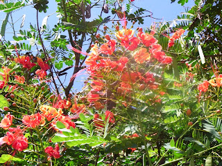 ★ 運転手さんに ”バス停”を尋ねると、『 Sunset Beach は2つ手前だったんだよ! 』と。下車して、約800m程南国の太陽が照りつける中、バス停2個分を歩き戻ることに。 R83の道路両側には、写真のような南国の花が歓迎してくれていると思って・・・。 - ノース・ショア 到着- 12:22